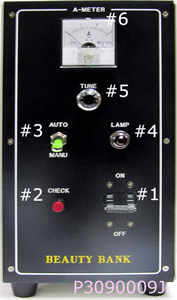 1. Please switch on ( #1) to make an electrical connection. ( Voltage: 220V) 2. Without connection of Transducer equipped with a horn (P3090001), please push the Switch to see if the control box works well. If the needle of Current Meter (#6, or P3110020) moves between 0.1 ~ 0.2, which means the control box is working properly. 3. Please have the transducer (with a horn ) connected to the control box using the connector ( P3090005). And, please push the Switch #9 (or, #2) in order to see (1) if the transducer works well, (2) if the Transducer and a Horn is connected well, (3) if the horn is not broken. If the needle moves between 0.2 ~ 0.4, the whole system works normally. |